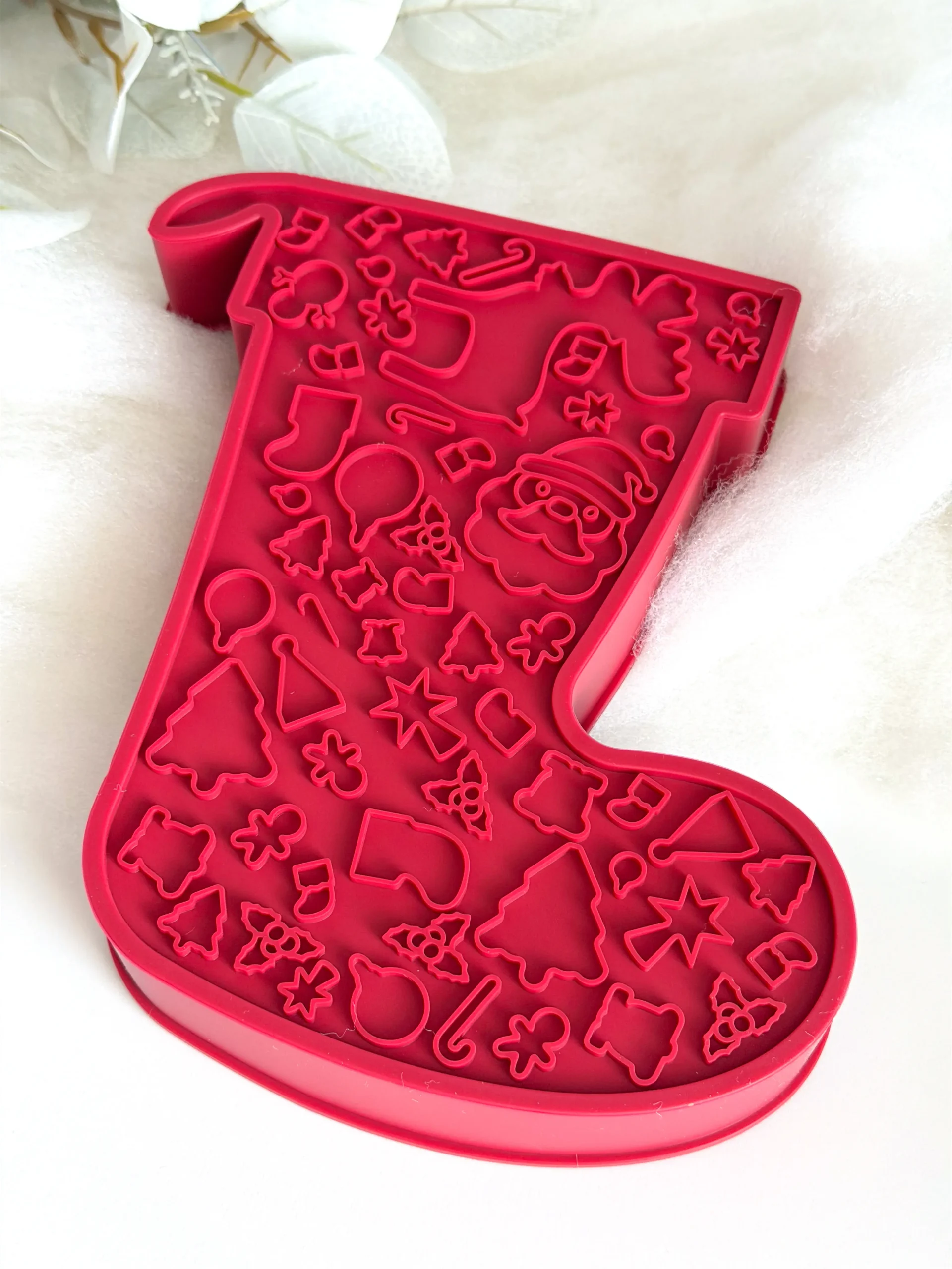 Gamelle de Noël 2 en 1 en forme de botte rouge 🎅. Parfaite pour ralentir la prise alimentaire ou proposer des friandises à lécher. En silicone alimentaire, antidérapante et facile à nettoyer.